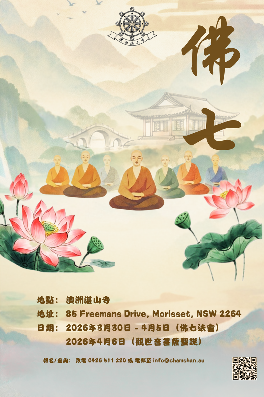 澳洲湛山寺逢星期六開放給大眾共修, 並定期舉辦佛七法會、佛誕慶典、八關齋戒等等。詳情請參看以下通告。